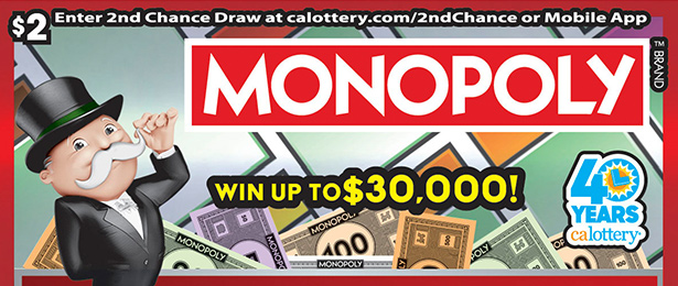 Nagsasagawa ang California Lottery ng isang MONOPOLY Scratchers 2nd Chance na Bonus Draw para sa mga nakarehistrong player ng 2nd Chance bilang insentibo para sa mga player na bumili ng MONOPOLY Scratchers (Games: #1665, #1667, #1669).