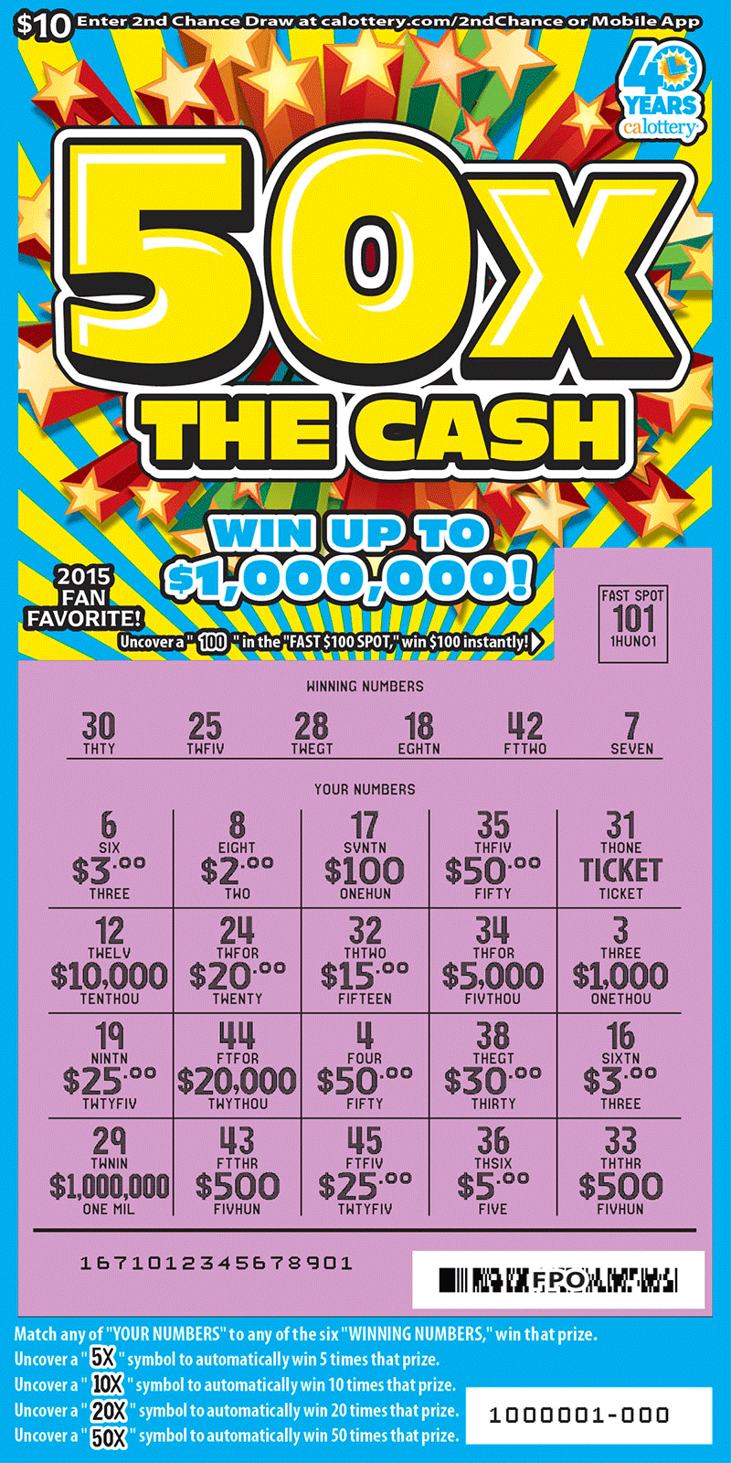 팬들에게 있기 있는 이 게임의 귀환으로 기대감이 폭발합니다!50X The Cash Scratchers®는 10배, 20배 및 50배의 상금 배수 찾기, Fast $100 스팟 발견 시 100달러 즉석 당첨 기회 등 21번의 놀라운 당첨 기회를 자랑합니다.무엇보다도 가장 눈길을 사로잡는 특징은 1,000,000달러의 최고 상금입니다!